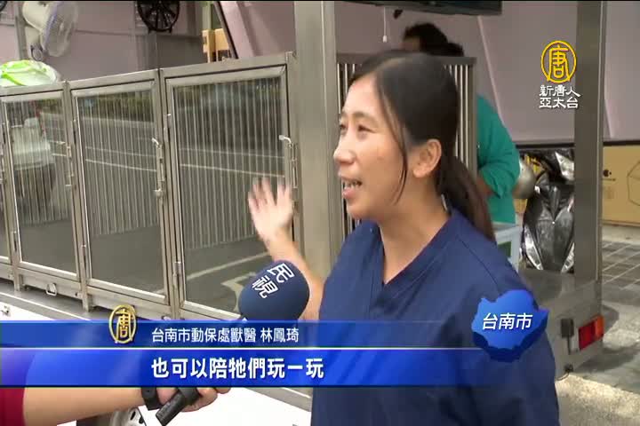 【新唐人亞太台 2018 年 04 月 17 日訊】友善流浪犬貓,台南市打造認養車主動出擊。兩部犬貓行動專車,搭載冷氣、風扇還有宣傳視聽設備,主動前往人潮聚集地點,供民眾認養犬貓,新的創舉也吸引民眾不少,好奇的眼光!