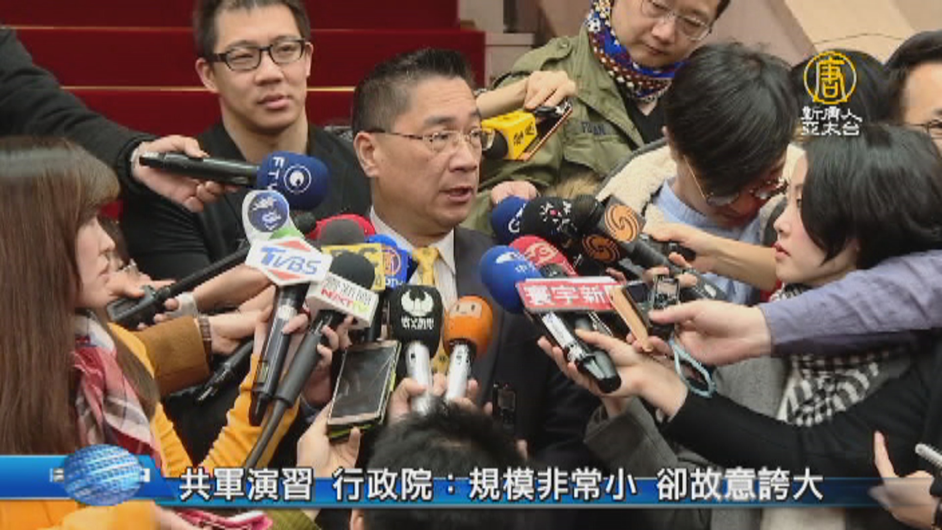 【新唐人亞太台 2018 年 04 月 18 日訊】共軍今天在台灣海峽舉行實彈演習,行政院發言人徐國勇接受平面媒體採訪時表示,這是例行演習,規模非常小,但中共卻故意誇大。台灣應該要對國軍有信心,國軍會全程監控與監測,不必附和中共。
