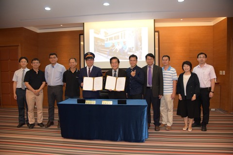 18日產學雙方在屏東大學舉行簽約儀式,福井鐵道文物館長陳朝強特別將135巡道車搬進校園展示,並為與會來賓導覽介紹這件珍貴的,會動的鐵道文物。
