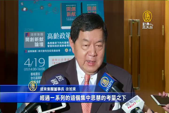 【新唐人亞太台 2018 年 04 月 19 日訊】人口老化正席捲全球,遠東集團與元智大學合作,針對這一個議題,舉辦論壇和高齡政策白皮書發表會,徐旭東認為,智慧科技協助是未來主流,要加速AI化,也對中共挖角台灣人才表示看法,他說,對岸也應該要客氣一點,不要把整個部門拉掉。