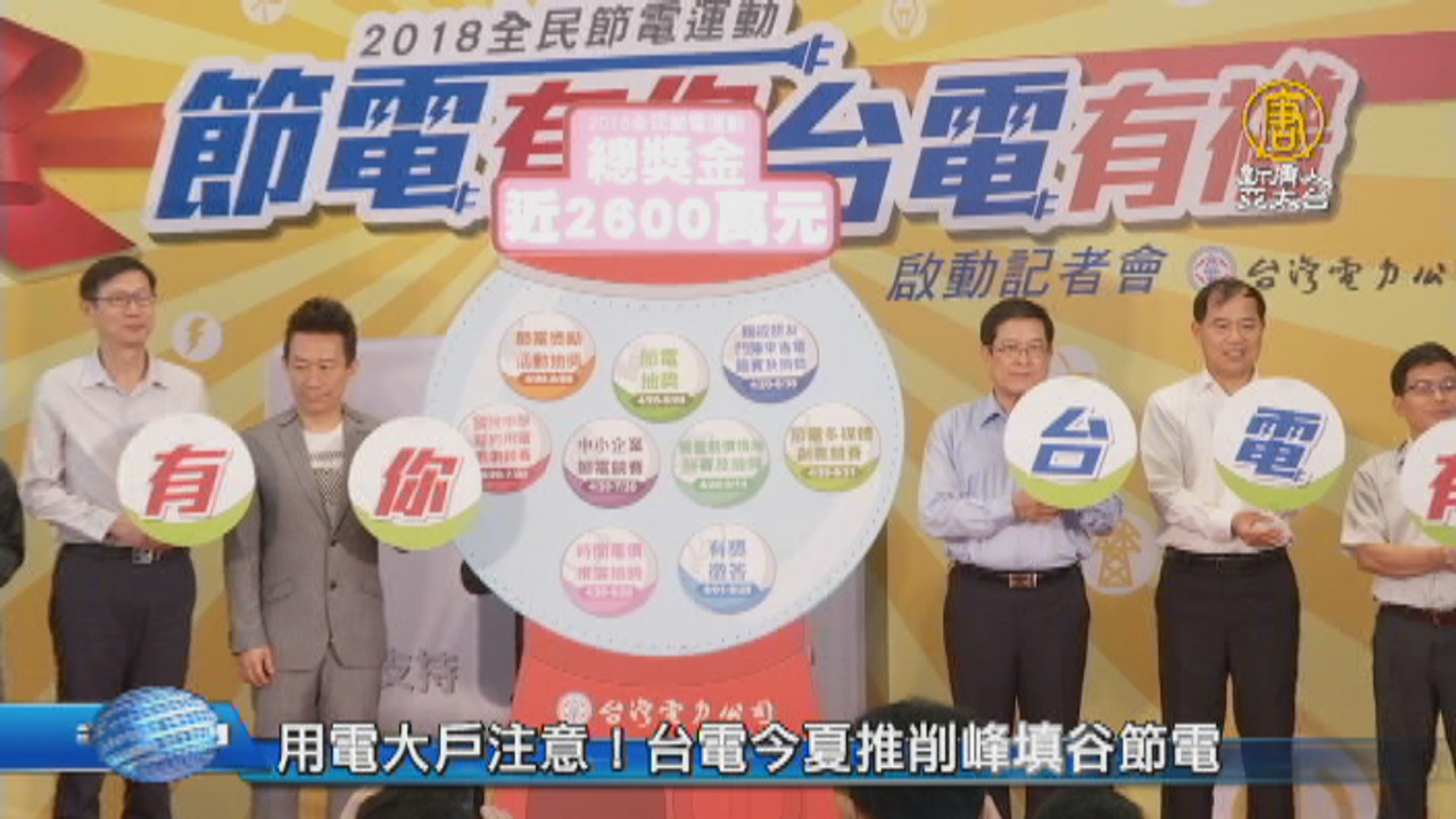 【新唐人亞太台 2018 年 04 月 20 日訊】隨著氣溫不斷升高,用電量也跟著增加,台電宣布將推出「削峰填谷」節電新措施,針對契約容量1000瓩以上的用電大戶,當達到需要節電的條件時,將提前5天到7天通知,應減少1%至5%的用電量。