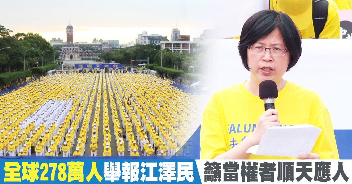 台灣法輪功人權律師團發言人朱婉琪表示,1999年4月25日,江澤民部署發起這場,對法輪功前所未有的邪惡迫害,19年仍然持續。隨著真相被揭露,全球要求法辦元兇的聲浪,也持續加高。20多萬受害的中國法輪功學員及家屬向中國最高檢察院控告,全球32個國家地區278萬民眾,連署向中國的最高檢、最高法院舉報,要求法辦江澤民。