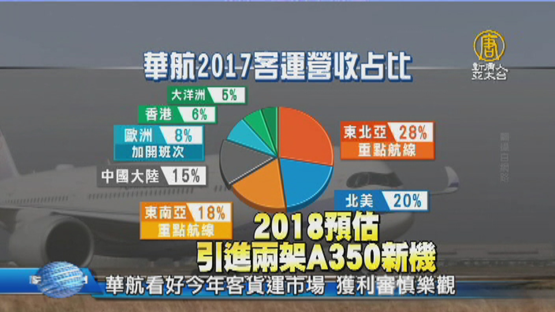 今年營運航線重點,華航以區域航線為主軸:東北亞(日本、韓國),東南亞為主;越洋航線方面,歐洲加開班次,北美航線新增據點。今年將再引進2架A350新機,提高運能。