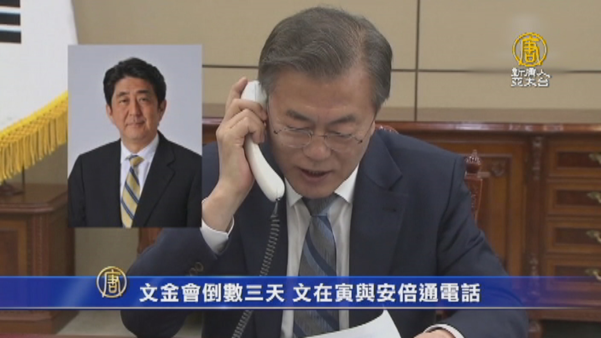 【新唐人亞太台 2018 年 04 月 25 日訊】文金會週五即將舉行。週二,南韓總統文在寅和日本首相安倍晉三通電話,雙方再次確認文金會也將符合日本利益。文在寅說,如果要宣布韓戰結束,不能單靠兩韓對話,至少需要南北韓,和美國三方達成協定。另外,澳洲也發聲,北韓不廢棄核武,國際制裁不停止。