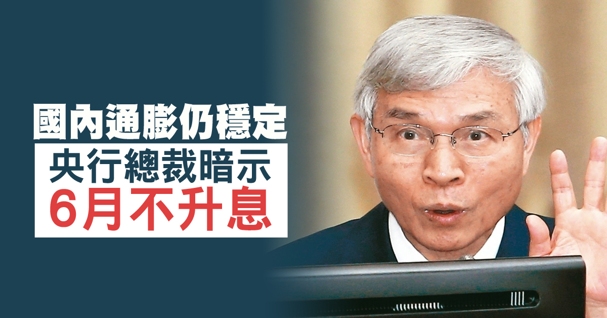 國內通膨仍穩定 央行總裁暗示6月不升息