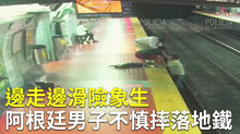 邊走邊滑險象生 阿根廷男子不慎摔落地鐵