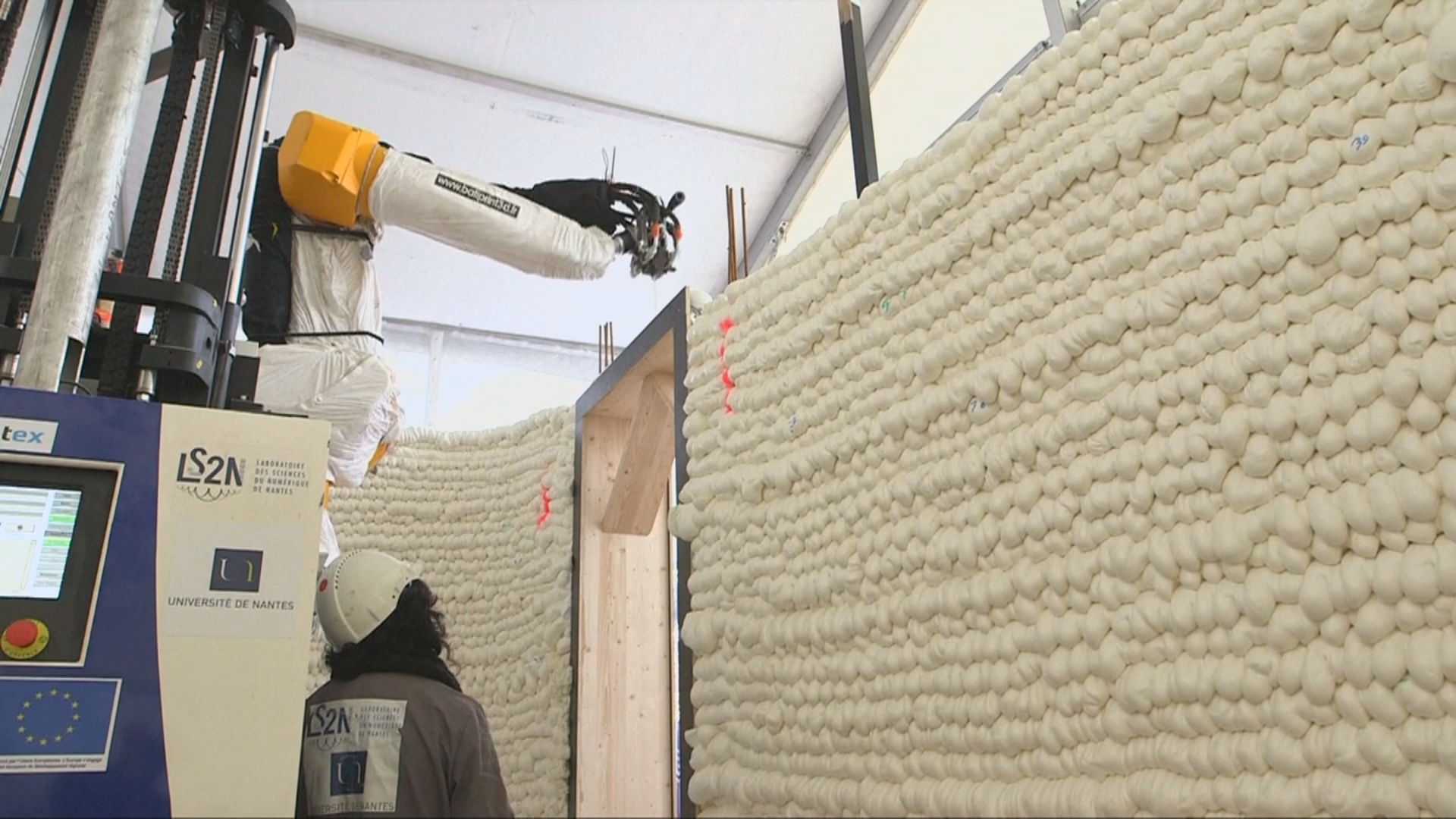 如同白色的奶油一層層堆疊,機器手臂忙碌地來回工作,這是3D列印機正在以特殊聚合物建造房屋的外牆。來自法國南特大學(University of Nantes)的研究團隊,計畫以3D列印打造第一棟就地建造的綠色社會住宅。本尼·弗雷(Benoit Furet)教授與他的博士生,使用特殊的聚合物材料製作建築物空心外牆,中間注入混凝土,達到良好的絕緣效果。