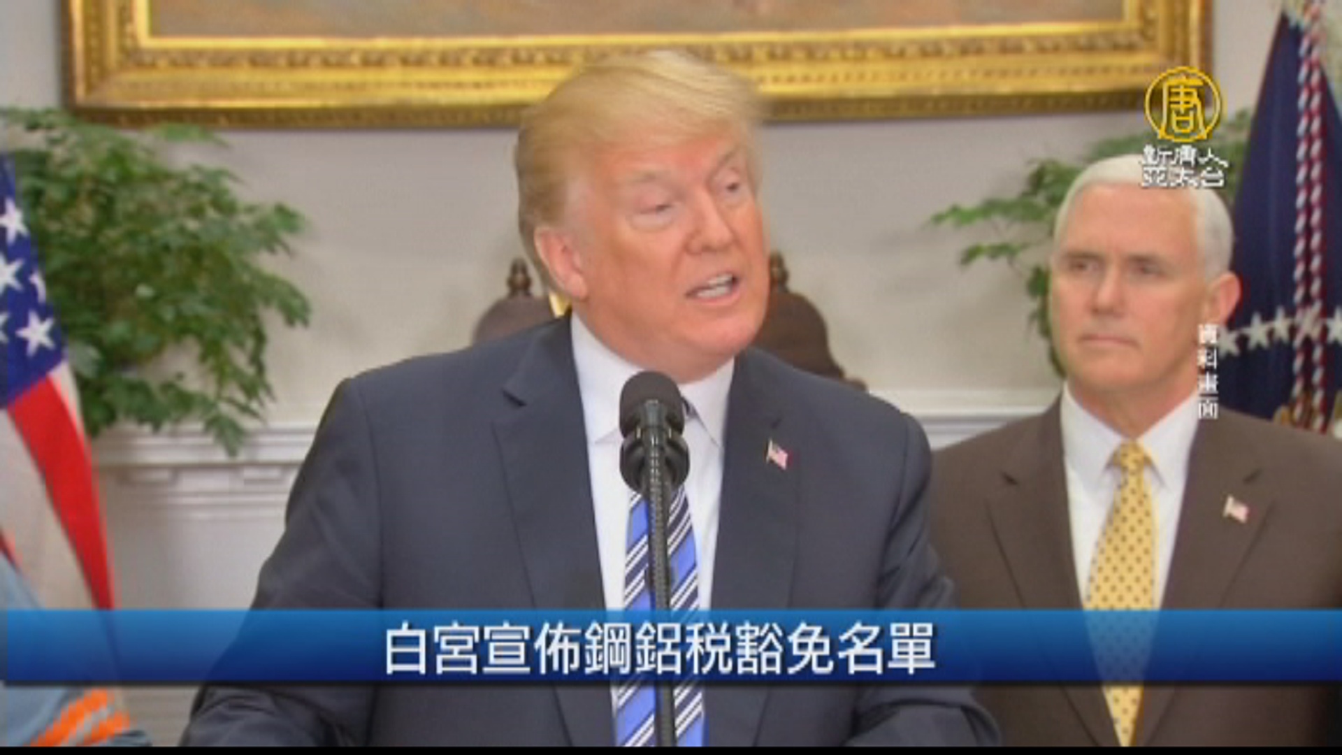 【新唐人亞太台 2018 年 05 月 01 日訊】白宮宣佈鋼鋁稅豁免名單