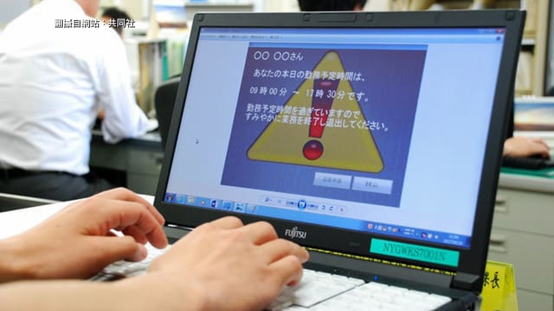據日本《共同社》報導,寢屋川市政府 原則上是下午5點半下班,距離下班時間1個半小時前,員工的電腦螢幕每隔30分鐘就會顯示一次「可使用時間」,並提醒,如要加班須先申請;如果未經申請而繼續使用電腦,電腦將在下班時間後20分鐘開始,每隔1分鐘顯示一次提醒畫面,10分鐘後自動關機。