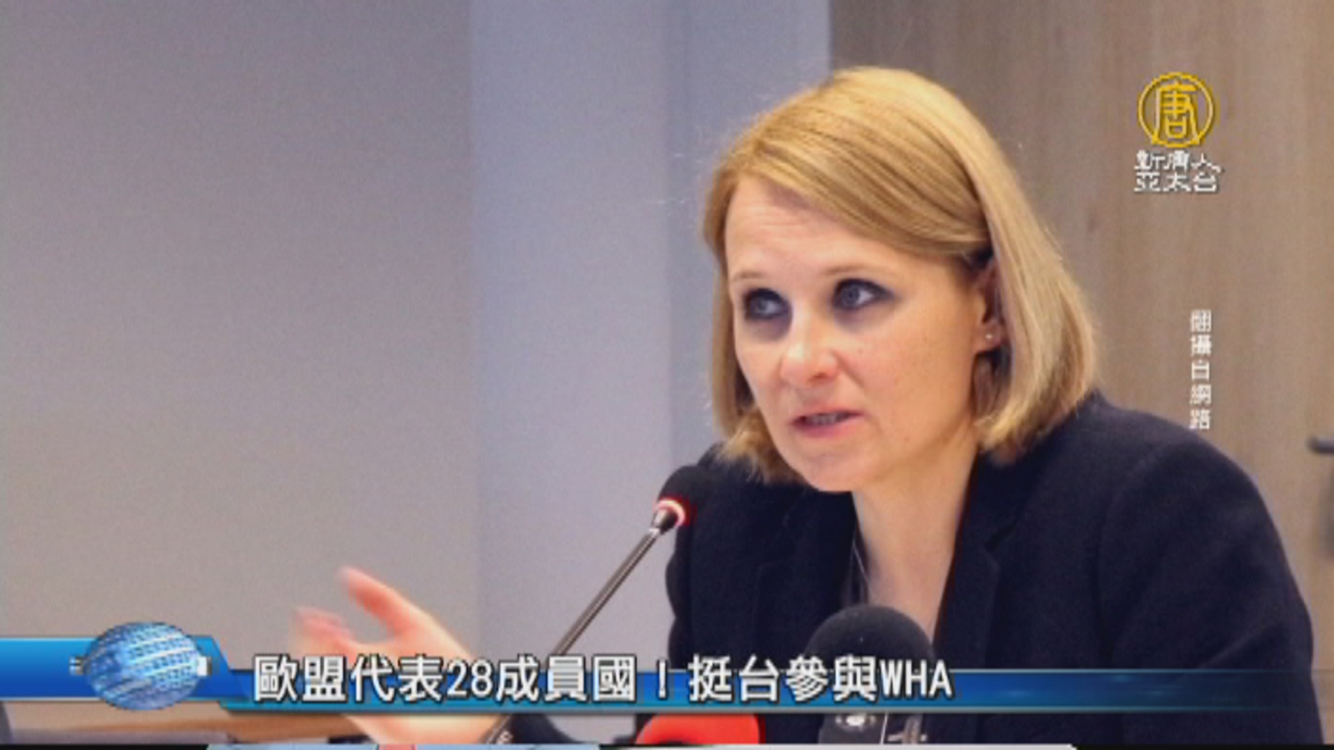 【新唐人亞太台 2018 年 05 月 09 日訊】世界衛生大會5月21日起將在日內瓦召開,WHO證實未邀請台灣參與世界衛生大會。但是,歐盟對外事務部發言人今天接受中央社訪問時,以罕見的受訪方式,表達支持台灣參與世界衛生大會(WHA),以及支持務實解決台灣的國際參與,包括參與WHA與WHO,及其所有技術性會議。