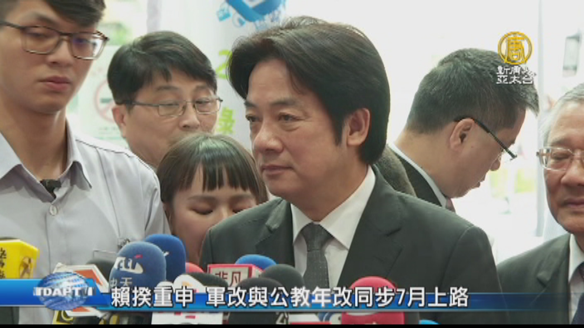 行政院長賴清德:「行政院目前的規劃,仍然希望7月1號軍改能夠跟公教年金改革能夠同步上路,目前的計畫並沒有改變」