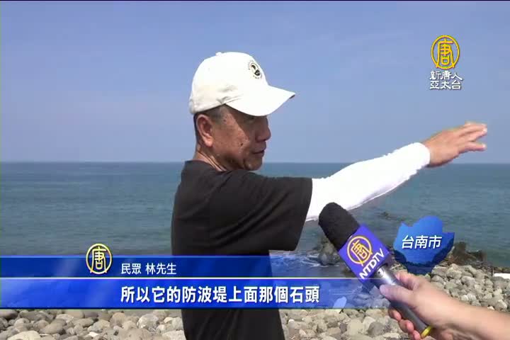 民眾 林先生:「因為黃金海岸,現在因為配合這些防波堤的關係,所以做了很多,防波堤你現在一直弄的話,弄到時間長久了以後,你就會有綠藻出現,所以它的防波堤上面那個石頭,你看,就一排一排的,這通通都是防波堤,你可以看那個綠藻。」