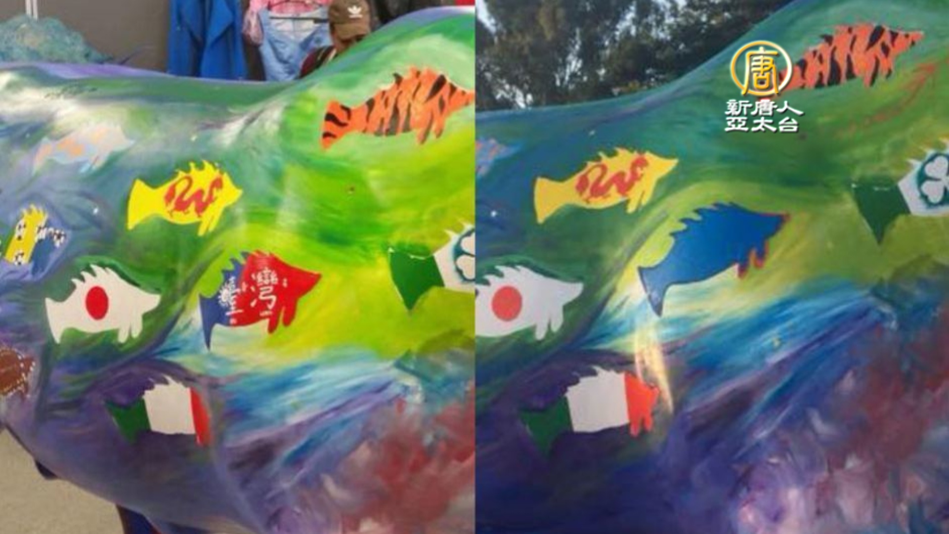 台灣學生在牛隻彩繪圖上,開心畫上台灣國旗字樣,然而卻被當地政府塗抹。