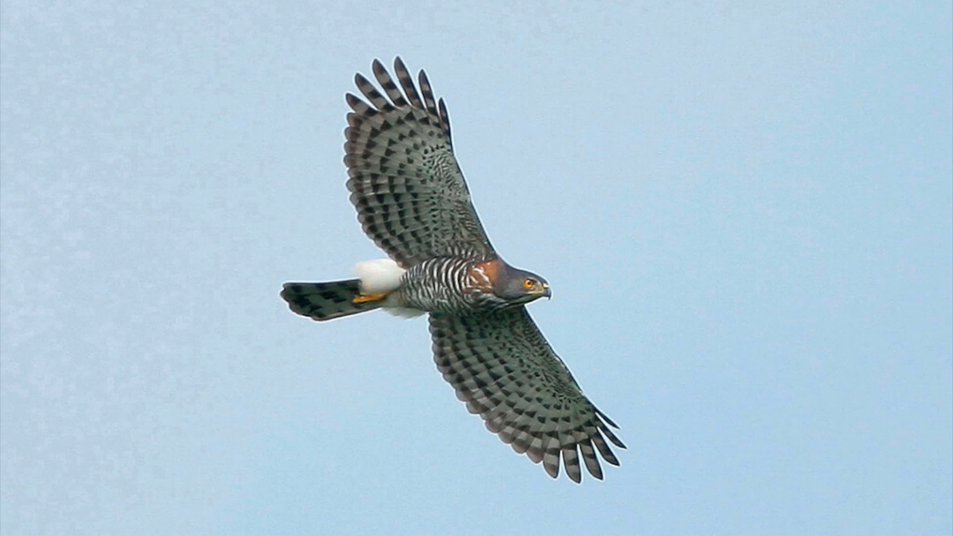 香港生態教育及資源中心 廖緒琴 :「牠留在香港的平均一年,整年留在這的有400隻,但是到冬天的時候,過境飛過來香港,可能又再加1500隻,所以我們說香港要賞老鷹的話,我們冬季冬天的時候是最好的季節,會超多,隨時在市區,或是郊野你抬頭,都一定看到的是麻鷹。」