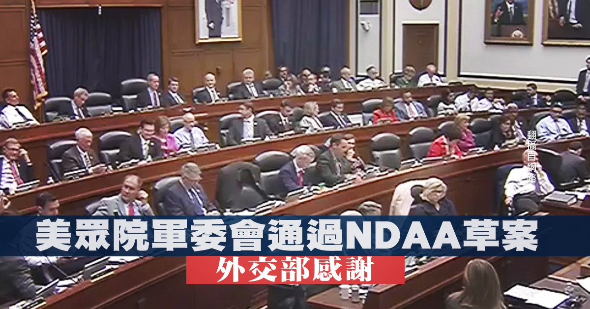 美眾院軍委會通過NDAA草案 外交部感謝