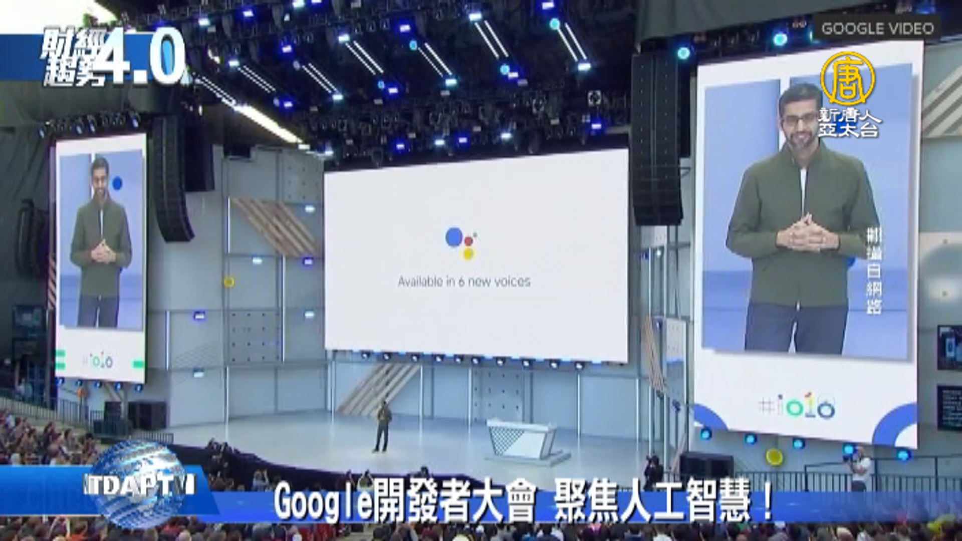 【新唐人亞太台 2018 年 05 月 12 日訊】關鍵時刻,帶您迅速掌握潮流趨勢,歡迎您收看財經趨勢4.0,我是趙庭譽。 AI,面對人工智慧的時代來臨,一連串的新聞,帶您看到,Google,微軟,以及facebook,在人工智慧發展上的策略。首先來看到,2018年Google開發者大會,本週登場,人工智慧,仍然是今年的主軸。包括語音助理、相簿、地圖和Gmail,都藉由AI人工智慧,進行升級。