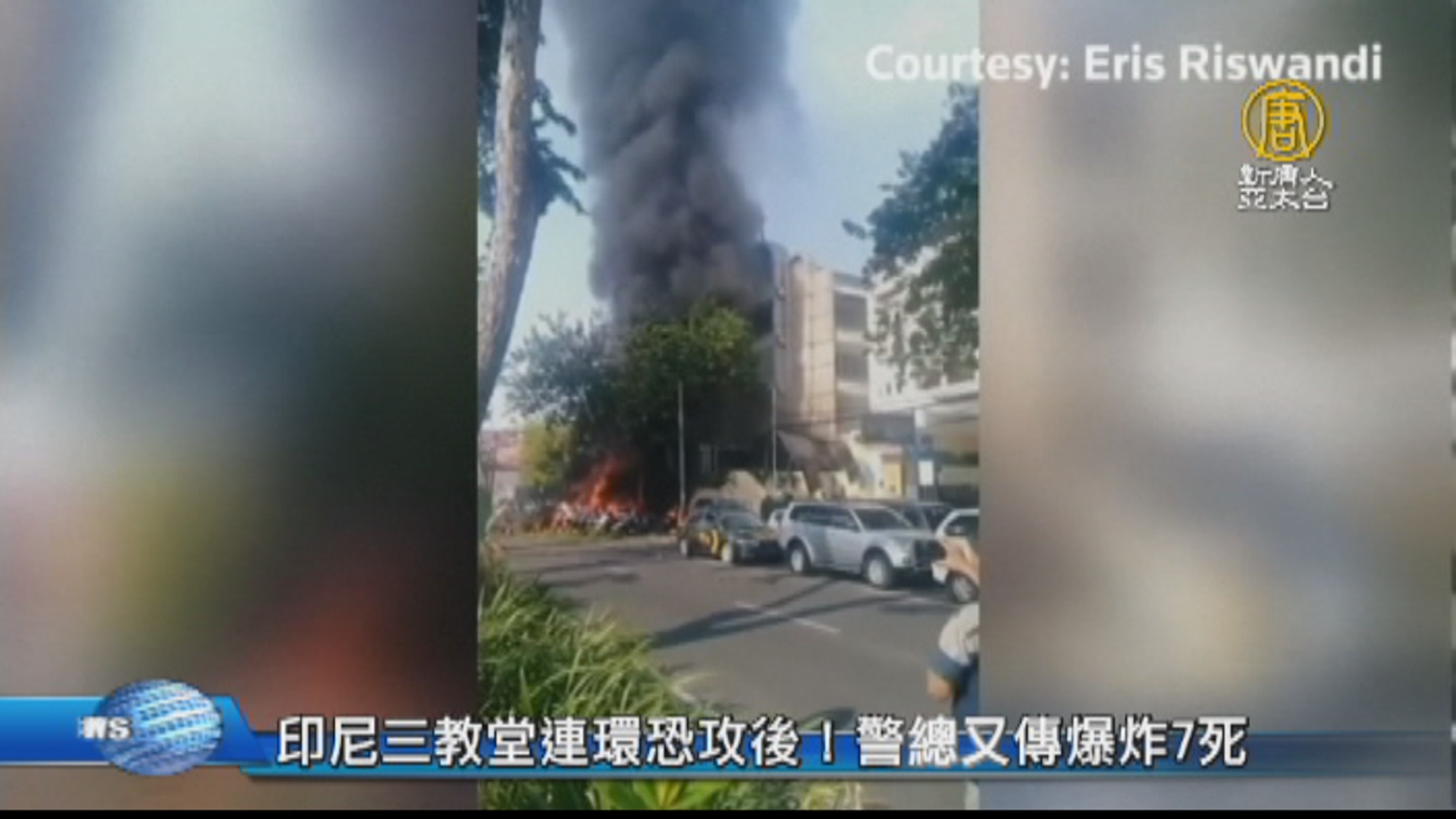 【新唐人亞太台 2018 年 05 月 14 日訊】午報頭條,國際最新消息,國際間又傳嚴重恐攻事件,地點是在印尼第二大城市泗水,當地時間九點,警察總部外發生爆炸。目前知道,警總爆炸至少造成7人身亡,而就在昨天,泗水的3座教堂也同時遭自殺炸彈攻擊,造成至少13死、40傷。警方稱,兇嫌是一家6口,兵分三路,父親及2子分別開車和騎機車,母親則攜2女犯案。激進組織ISIS,坦承犯案,目前已確認沒有台灣人傷亡。警方發現,警總與教堂爆炸案的炸彈,相信兩宗案件有關連。這是印尼近13來最嚴重的恐怖攻擊,總統佐科威,昨天探視傷者,譴責恐攻殘忍。