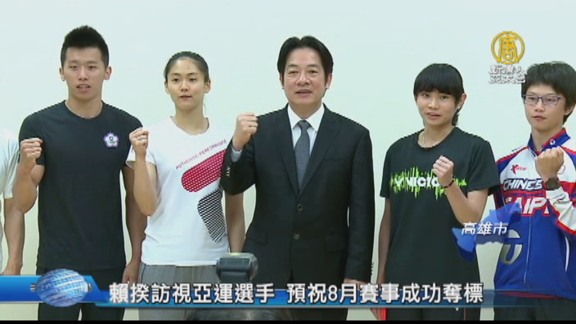 【新唐人亞太台 2018 年 05 月 14 日訊】歡迎回來。行政院長賴清德今天(14日)南下到高雄國家運動訓練中心,訪視選手備戰「2018年雅加達亞運會」培訓情形,為選手及教練加油打氣。
