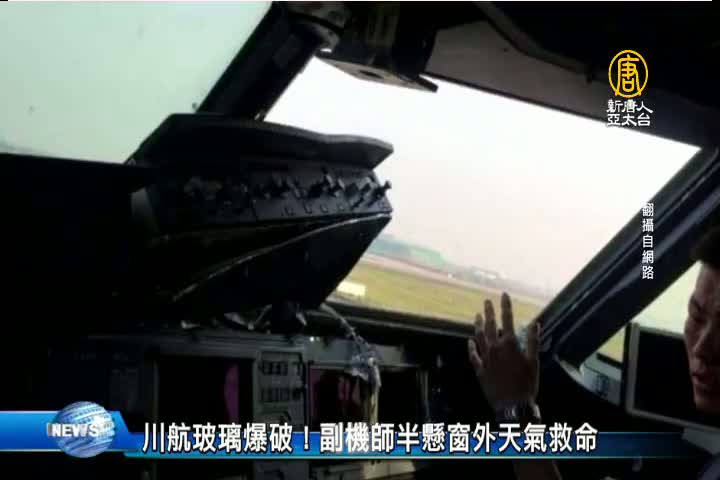 【新唐人亞太台 2018 年 05 月 15 日訊】再來看到,這個驚險一瞬間,昨天早上,中國四川航空,由重慶飛往拉薩的一架航班,迫降成都 機長透露,在萬米高空時,一聲巨響,玻璃突然爆裂,副駕駛半邊身體已經懸掛窗外,溫度也突然驟降到零下20到30度左右。還好副駕駛繫了安全帶,最後順利操作迫降。機長說,幸好天氣幫忙。昨天能見度非常好,如果昨天伴隨降雨或者天氣狀況不好的話,後果無法預料。