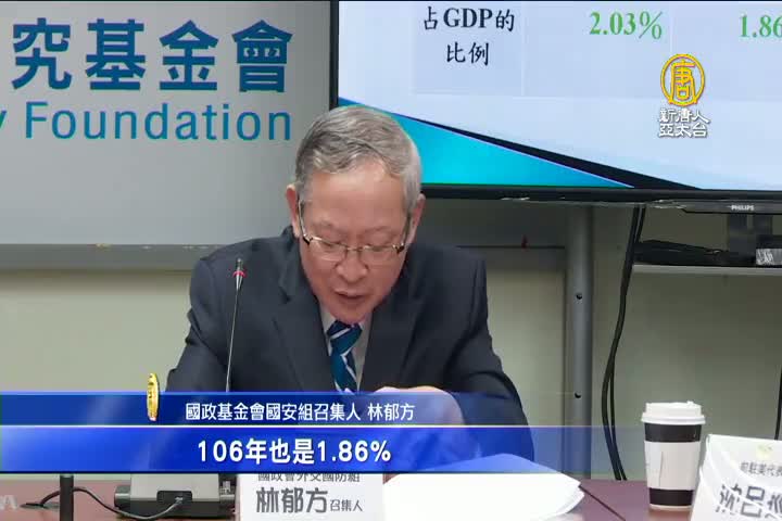 國政基金會國安組召集人 林郁方:「民進黨政府當在野黨的時候,不斷罵馬英九政府,說你國防預算不到GDP的3%,你根本沒有真心要保護台灣,你只想跟中國大陸統一。那我們現在就來看,你做到了沒有?106年你只有1.86%,現在到了你民進黨真正執政要滿兩周年,你只有1.84%。」