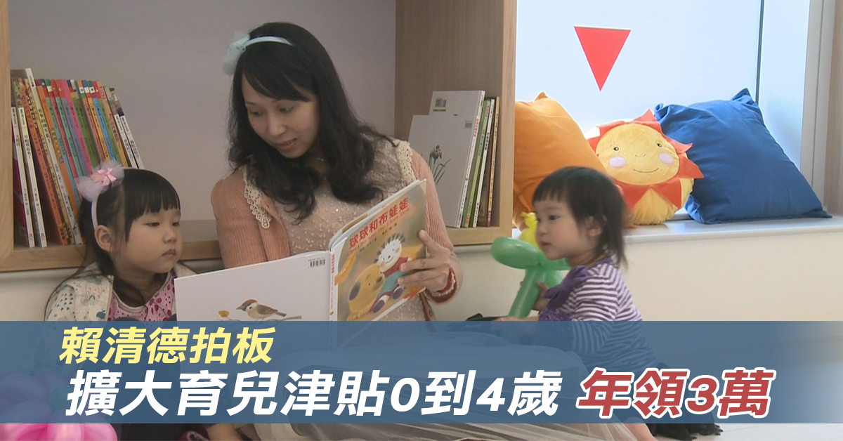 賴清德拍板 擴大育兒津貼0到4歲年領3萬