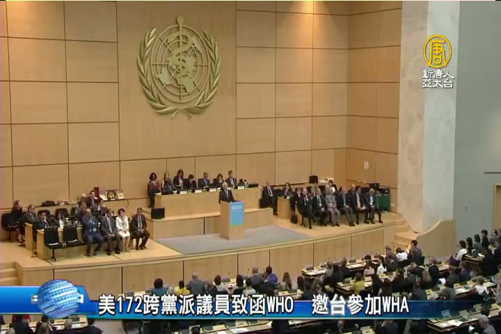 【新唐人亞太台 2018 年 05 月 17 日訊】美國172位跨黨派聯邦眾議員,今天致聯名信,強烈敦促世界衛生組織秘書長譚德塞,應「無條件」讓台灣參與今後的世界衛生大會,WHA;信中明確指出,WHO已成為北京拒絕讓台灣有意義參與相關會議的同謀。WHO的作法已違反自身組織章程的精神,這次聯名信,相當於有近4成的眾議員參與連署。