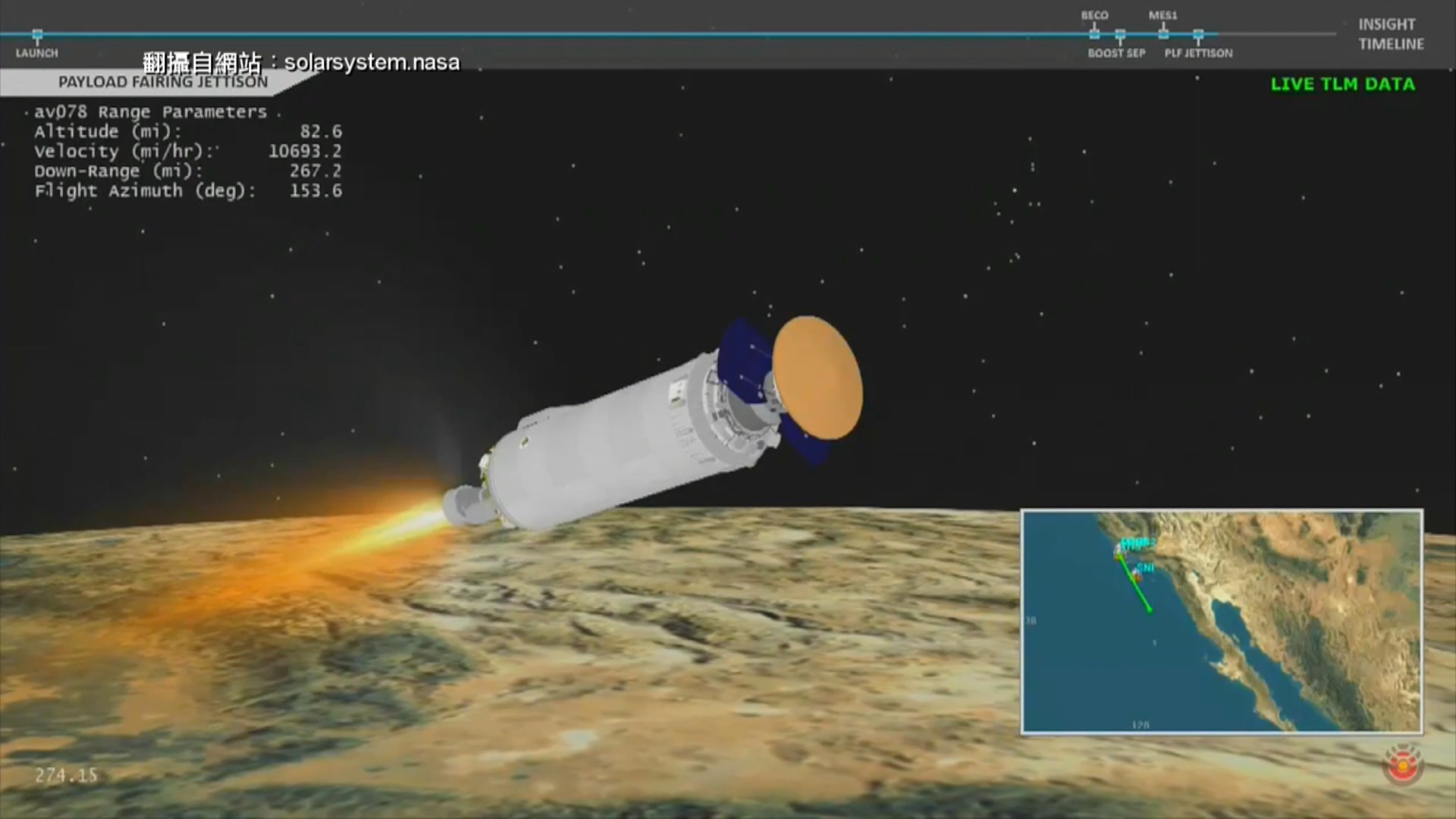 2018-12-05 15:45:05美國太空總署(NASA)的無人探測器「洞察號」,在經過近7個月飛行之後,在台灣時間周二凌晨降落火星表面。在準備登陸那一刻,探測器先要以每秒5.5公里的高速穿越火星大氣層,面臨攝氏1500度的高溫。地球在這段過程會短暫經歷「6分半」鐘的時間,是收不到訊號的,成功登陸後如果一切順利的話,「洞察號」將在火星表面探測2年。