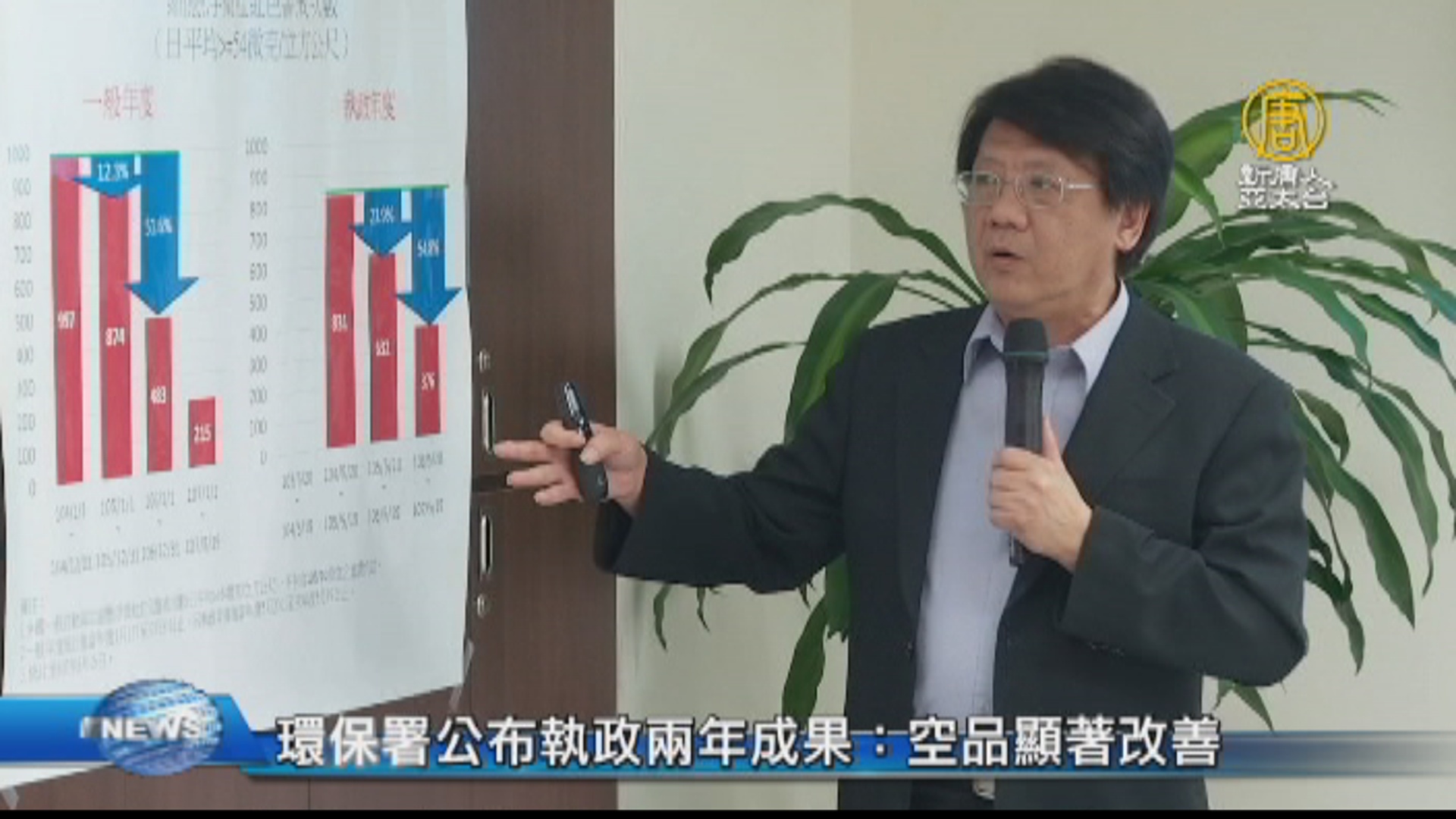 【新唐人亞太台 2018 年 05 月 18 日訊】環保署今天召開記者會,回顧過去兩年,空氣品質改善成果,數據顯示,細懸浮微粒,俗稱PM2.5,紅色警戒站次數,從831次,連續兩年下降,第二年來到376次,改善幅度達54.8%,代表空氣品質改善確有成果,環保署長李應元,也達成承諾,不用因此下台。