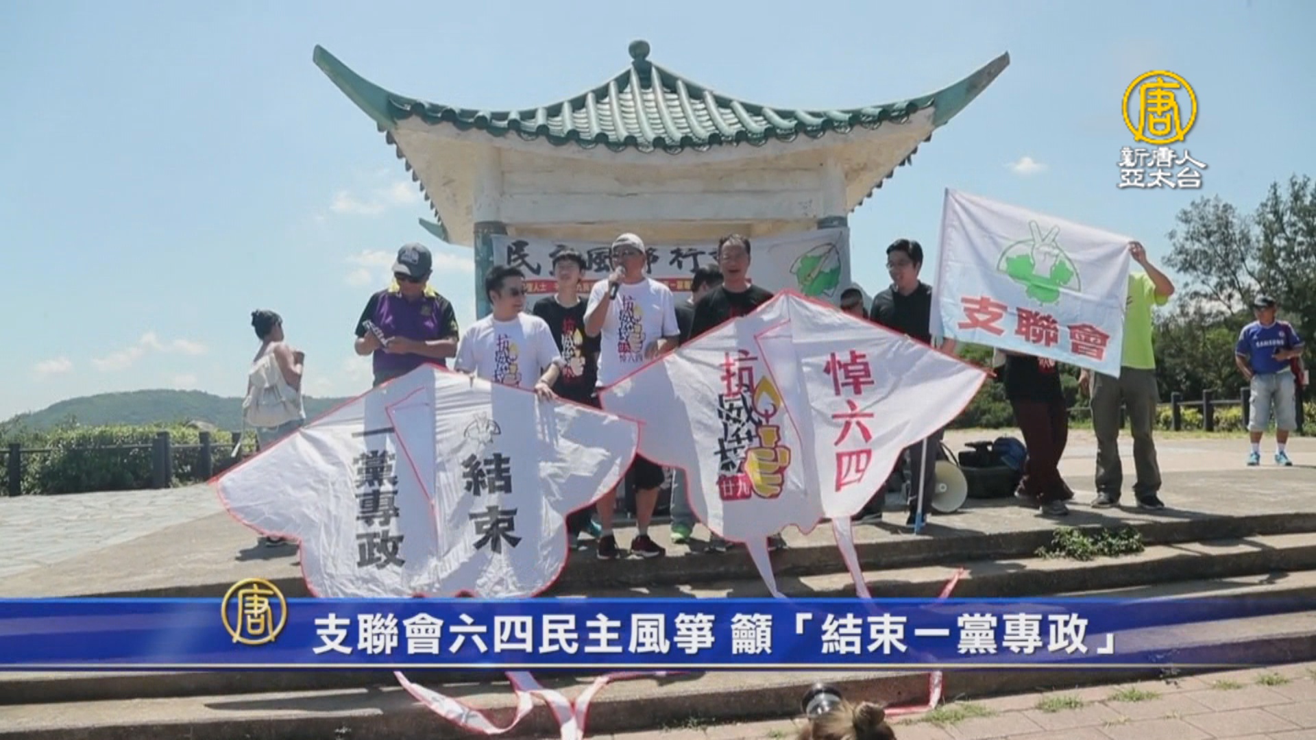 支聯會大約20名成員頂著酷暑在西貢清水灣郊野公園舉行民主風箏活動。支聯會副主席蔡耀昌表示,民主風箏活動是要繼承六四學子追求民主的志願,今次除了「悼六四抗威權」的主題風箏外,還特別製作了一個「結束一黨專政」的大風箏。