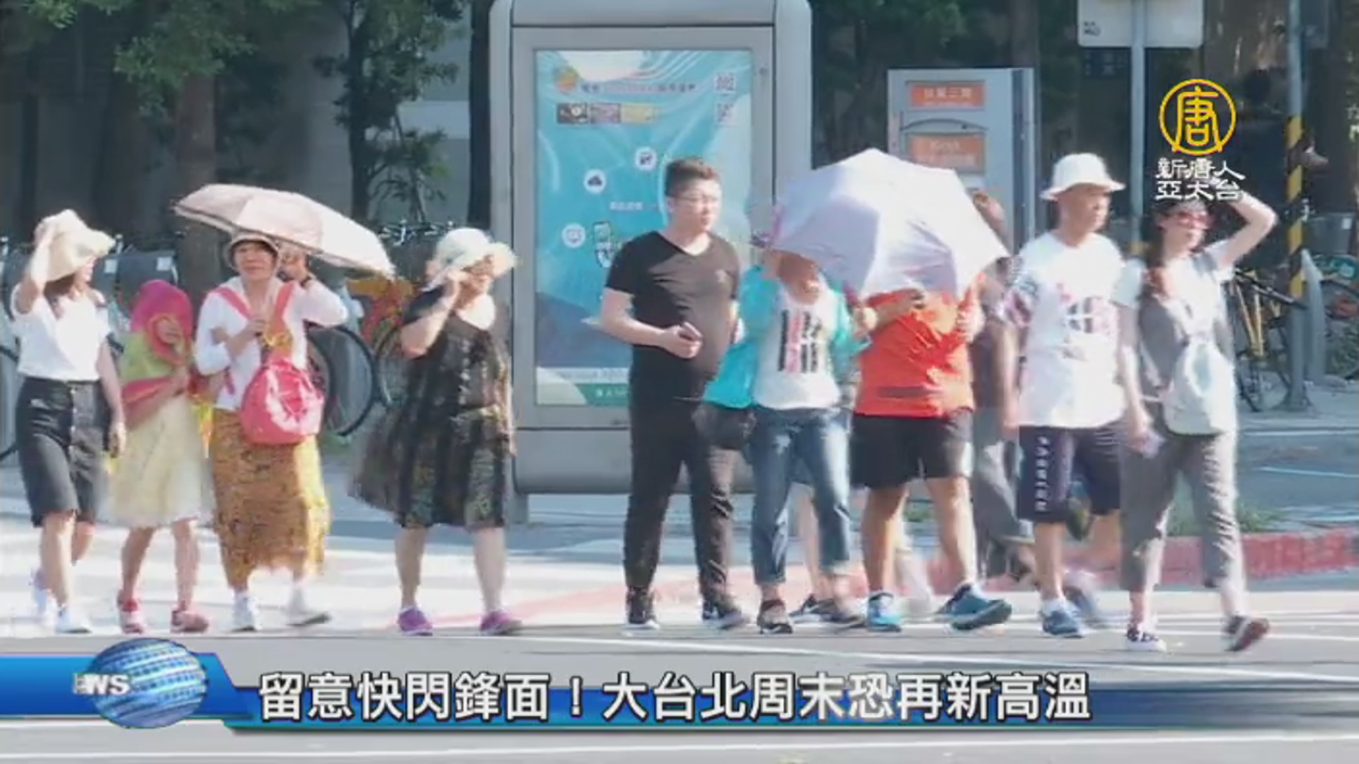 【新唐人亞太台 2018 年 05 月 23 日訊】天氣炎熱,今天鋒面快閃通過,東半部和北部可能會有短暫陣雨,下星期還會有另一波鋒面接近,3天的天氣都會不穩定。前氣象局預報中心主任吳德榮說,這個週末,大台北將再升到37度以上,甚至有機率挑戰今年的高溫記錄。