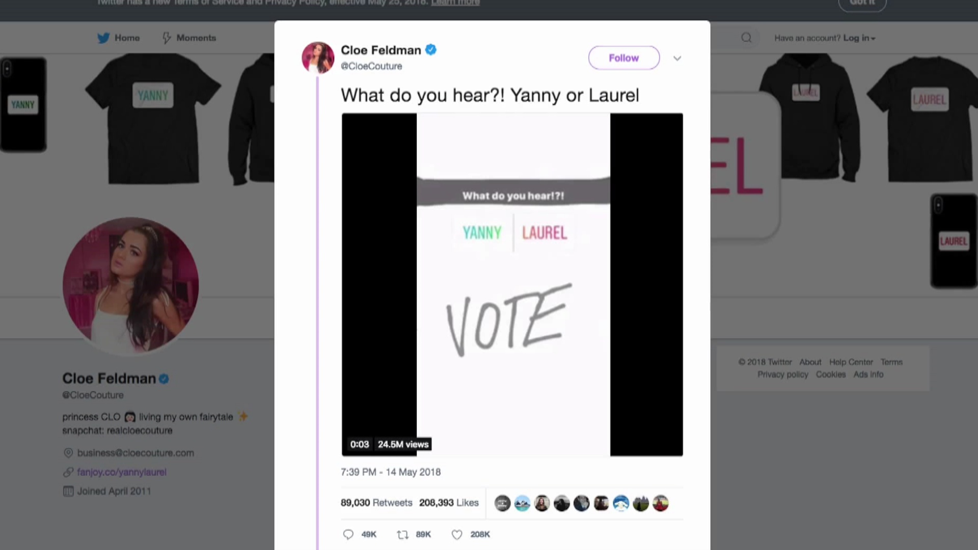這個長度只有4秒的音頻,到5月18日週五早上,點擊量超過2400萬。音頻中讀的單詞到底是「Yanny」還是「Laurel」,成為網絡上熱議的話題。