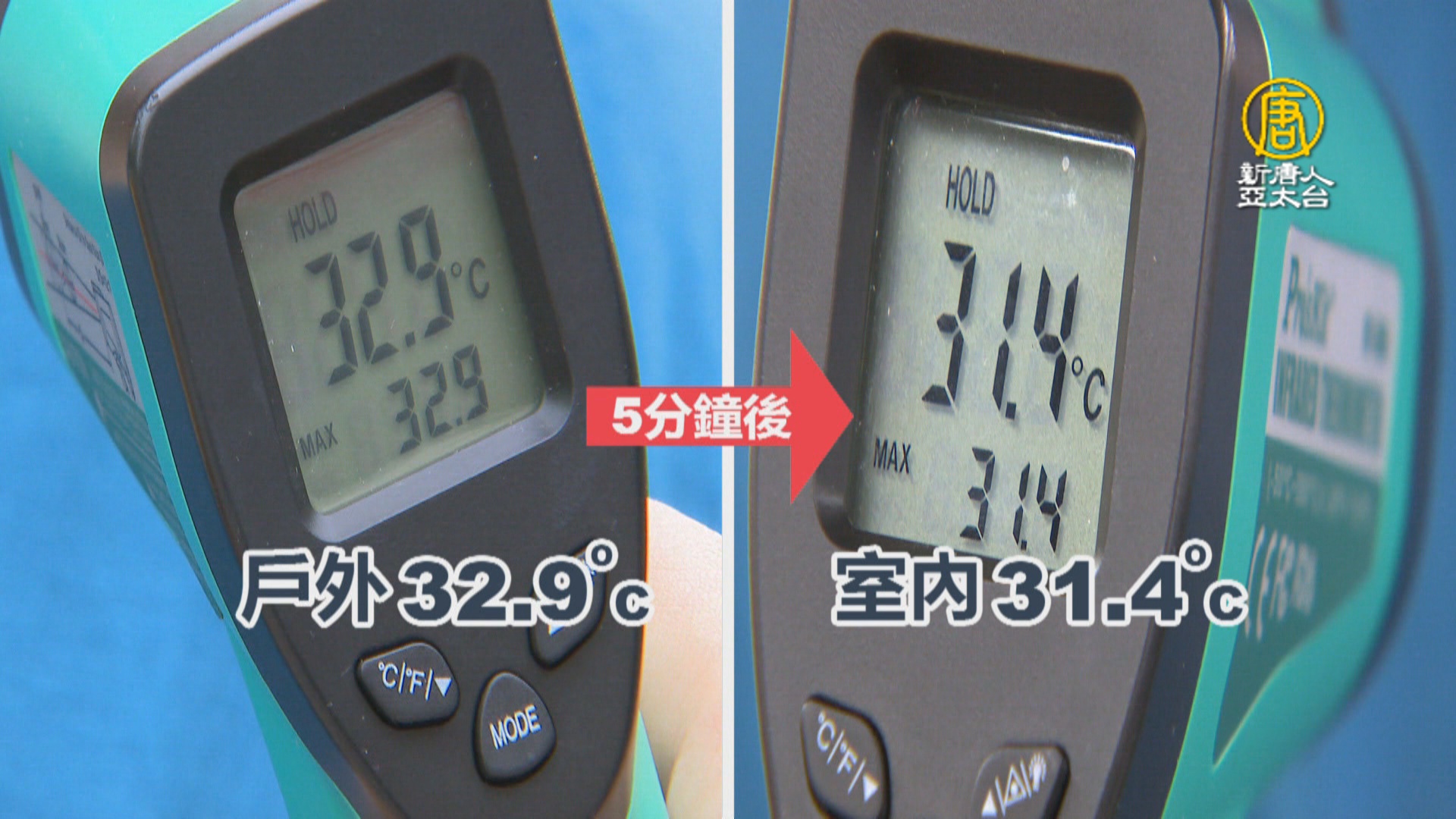 涼感衣真的有這麼神奇嗎?實地測試看看,一般衣物在室外體溫33.4度,穿上涼感衣在戶外測量體溫為32.9度,進到有冷氣的室內環境待上5分鐘左右,就能感受明顯變化,體溫立刻再降1.5度。