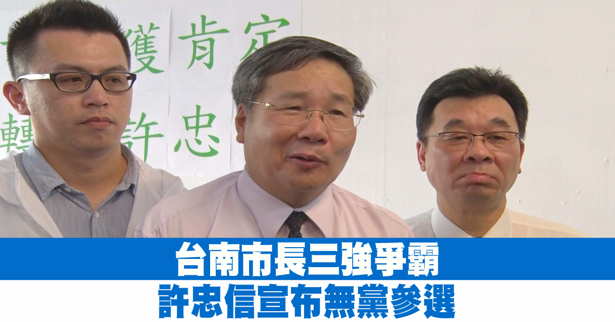 目前台南市長選舉有民進黨黃偉哲,國民黨高思博,再加上今天以無黨籍參選的許忠信。
