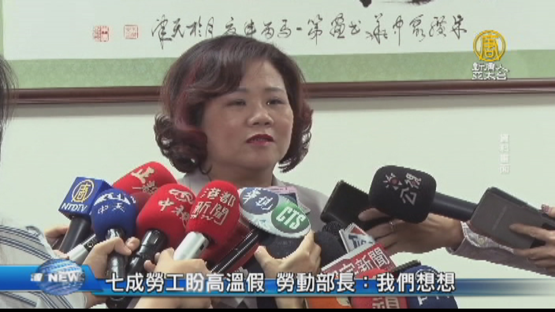 【新唐人亞太台 2018 年 05 月 28 日訊】台北高溫昨天飆破38度,勞動部長許銘春,今天在立院被媒體問到是否研議放高溫假,許銘春說:「這是個好問題,我們會來想想」。日前一份調查顯示,有約七成的勞工認為,政府「應該」訂定高溫假。