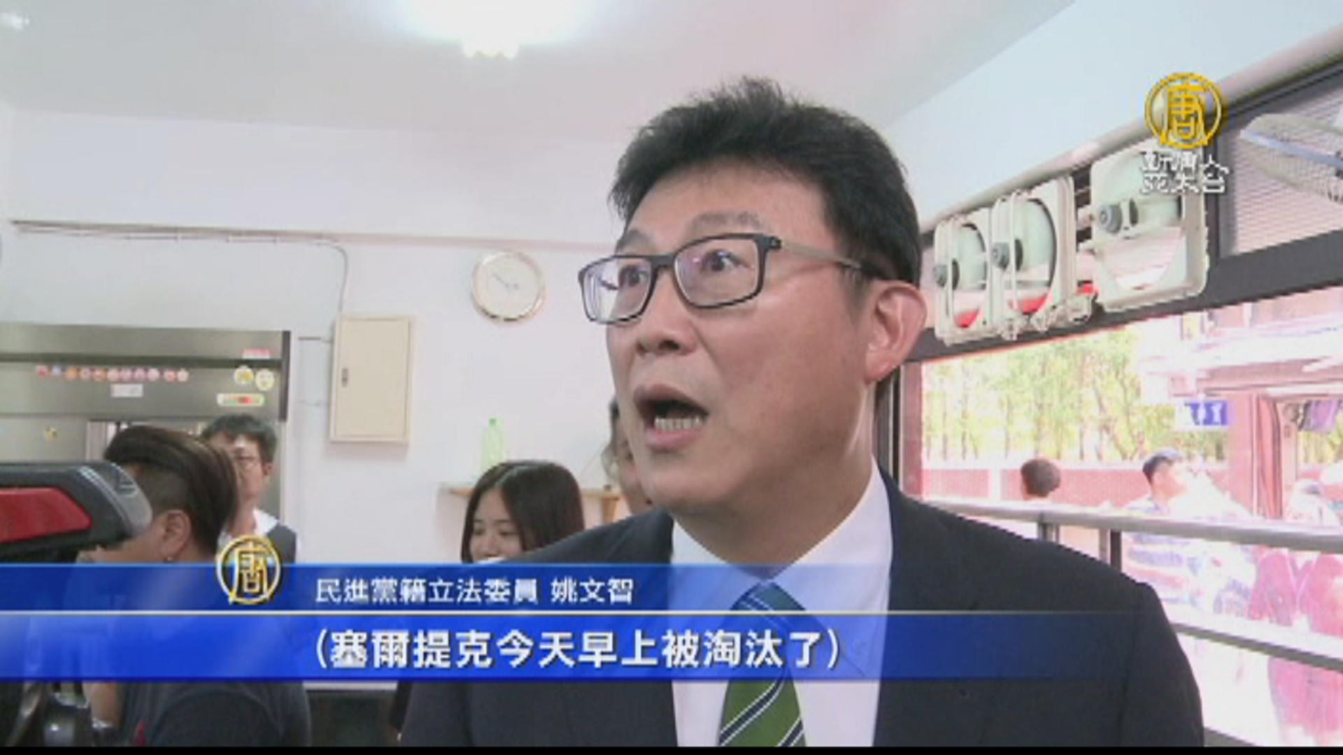 民進黨籍立法委員 姚文智:「(委員你早上沒看比賽對不對?)輸了嗎!(塞爾提克今天早上被淘汰了),(已經輸了),(委員),真的嗎?今天不是休息嗎?(今天早上淘汰了),(輸了),(那你要幫他贏啊),沒關係、那個東岸的綠衫軍輸了,台灣的綠衫軍會贏,謝謝、謝謝、謝謝,真的還假的啦、我以為,(真的啦),但是,好啦、沒關係啦,謝謝、謝謝。」