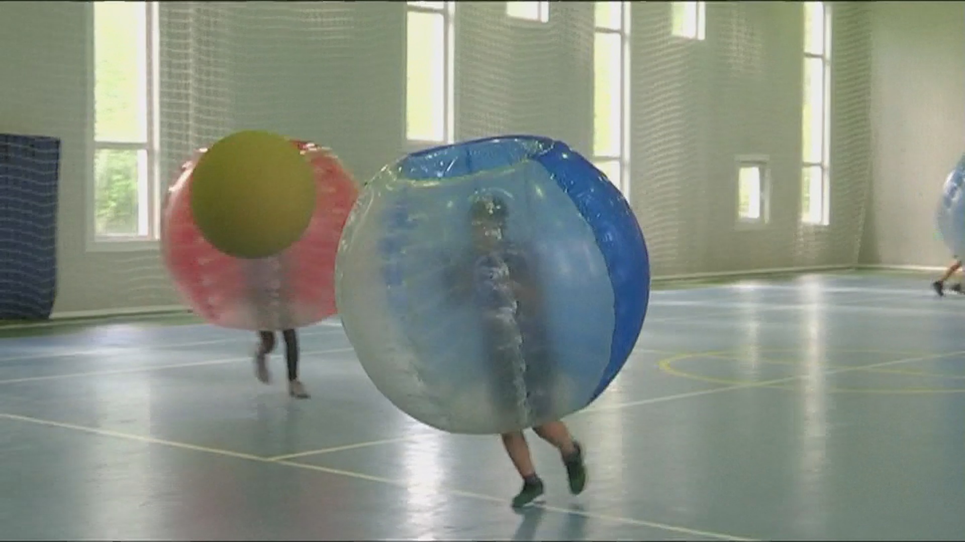 穿著大泡泡裝還要踢球,實在不是件容易的事,但比起踢球,在球場上打滾相互碰撞更有樂趣,在泡泡裝裡就算跌倒也不會受傷。甚至有的時候,球完全被忽略,孩子們故意在球場上相互碰撞,因為不會有被判紅黃牌離場的規則。