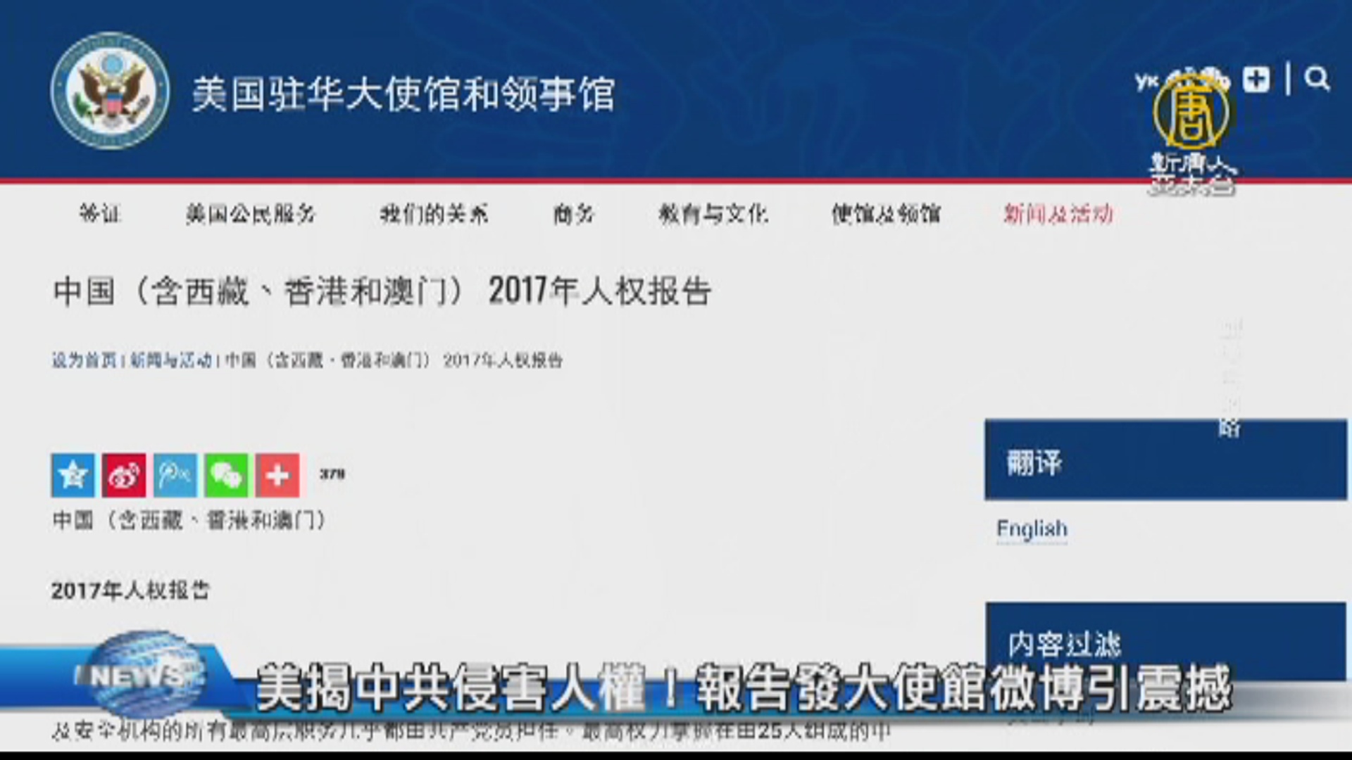 美揭中共侵害人權!報告發大使館微博引震撼