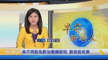 2018-06-01 07:07:30早安新唐人,帶您關心,美國商務部昨天宣布,從今天6月1日開始,對歐洲、加拿大及墨西哥,分別徵收25%的鋼鐵稅及10%的鋁材關稅。台灣和日本,這次仍沒有被列入豁免。對此,加拿大和墨西哥回應,將對美課徵報復性關稅。週四,歐、美股市,雙雙下跌作收,道瓊工業指數下跌250點。