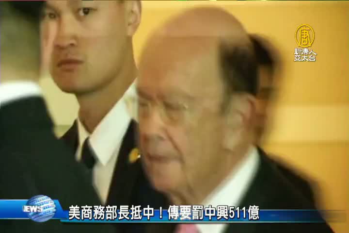 【新唐人亞太台 2018 年 06 月 02 日訊】接著來關注美中貿易議題。美國商務部長羅斯,在今天上午抵達中國北京,準備與中國展開第三輪美中貿易談判。並預計在6月3號,也就是明天,與中國國務院副總理劉鶴會面,商討美中貿易議題。不過今天,有外媒報導,川普政府可能很快就會宣布,對中興通訊祭出高達17億美元,約新台幣511億元的罰款。接下來雙方談判如何發展,受到關注。