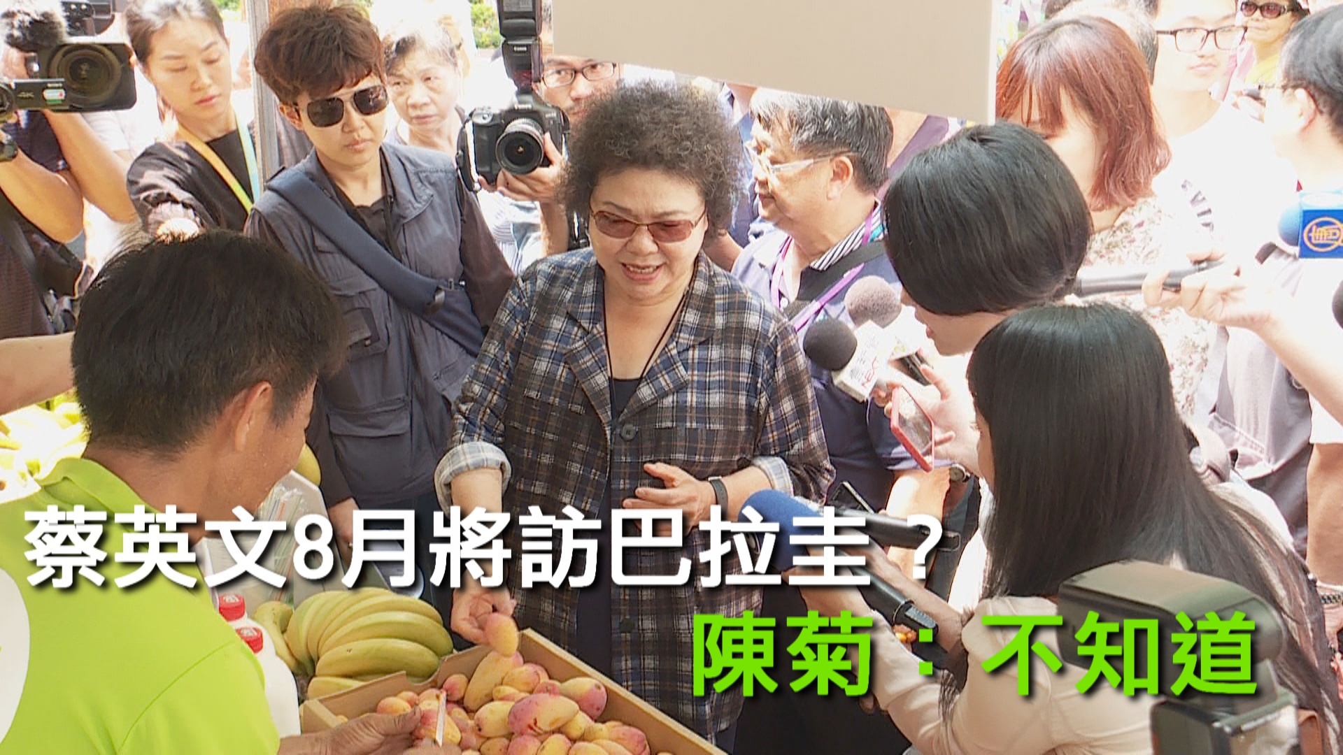 提到台灣邦交,媒體追問,外傳總統蔡英文8月要出訪巴拉圭,會跟著去拉丁美洲推銷嗎?陳菊說,蔡總統出訪,她就要顧家,她現在也不知道有這個出訪行程,只看到媒體報導。