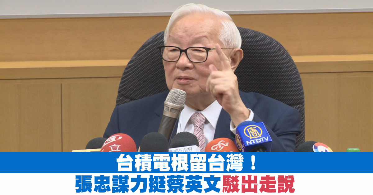 台積電創辦人 張忠謀:「我沒有說這個話,我是非常,支持政府。那我現在支持,蔡英文總統。台積電將出走台灣?剛剛相反啦,跟我們的行為,跟我們的意願意向,剛剛相反,台積電,根留台灣,台積電繼續在台灣投資。」