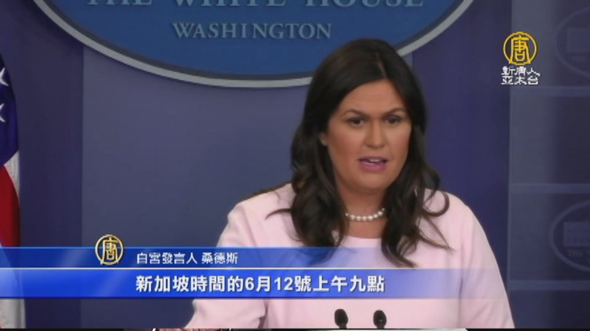 白宮發言人 桑德斯:「我們覺得事情持續在推進,也有很好的進展,我們也持續籌備雙方領導人的會面。我可以告訴你,總統每天都收到來自國安團隊的北韓簡報。我也可以告訴你暫定的會談時間,第一場會談將會在新加坡時間的6月12號,上午九點。」