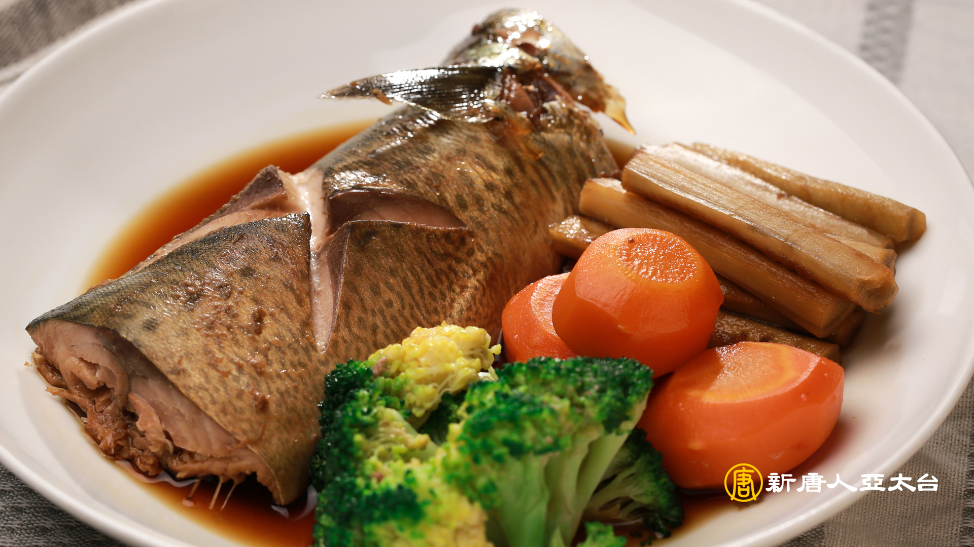 1.冷鍋下魚加水及清酒、糖,再開火加入牛蒡、紅蘿蔔、花椰菜,蓋上鋁鉑紙做成的鍋蓋,利用水氣煮至鮮魚熟透後,花椰菜先行撈起備用,並繼續燉煮魚湯。