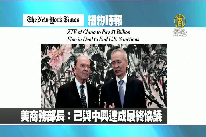 【新唐人亞太台 2018 年 06 月 08 日訊】首先來看到美國紐約時報報導:美國商務部部長表示,已和中興通訊達成最終協議。