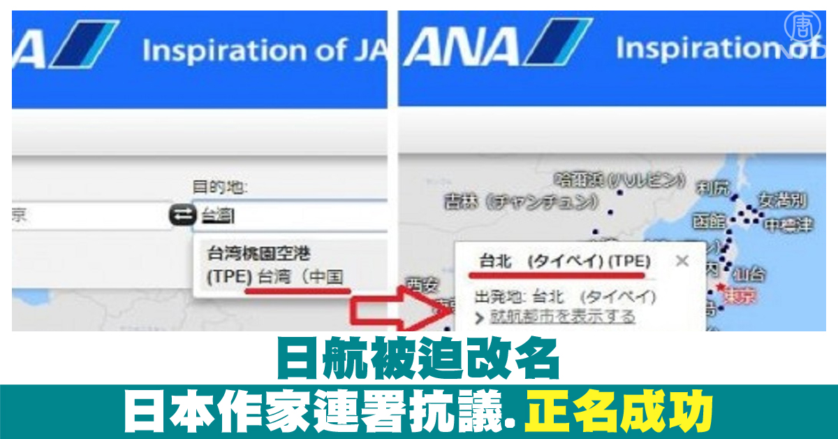 日航被迫改名 日作家連署抗議.正名成功