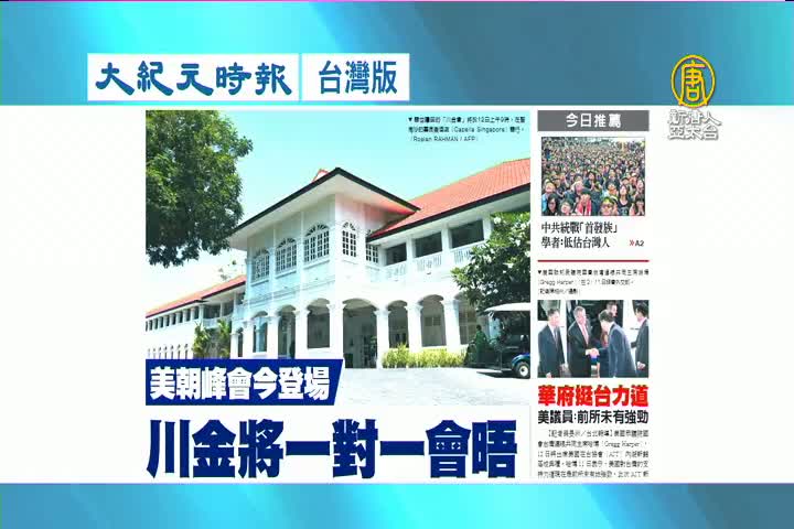 【新唐人亞太台 2018 年 06 月 12 日訊】繼續看到大紀元時報台灣版報導:美朝峰會登場,川普將與北韓領導人金正恩一對一會晤。