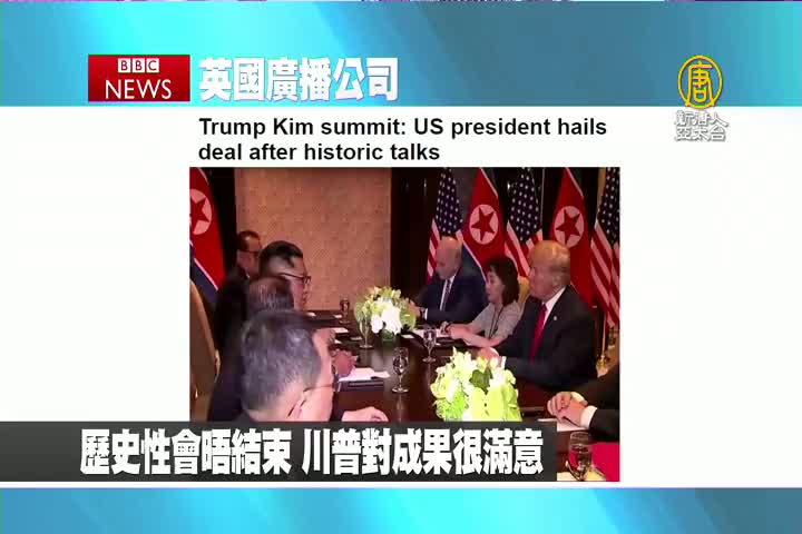【新唐人亞太台 2018 年 06 月 13 日訊】繼續是英國廣播公司BBC的報導:歷史性會談結束,川普對成果感到十分滿意。