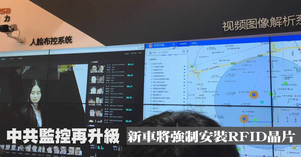 中共「天網工程」遍佈中國大江南北,現在連車輛都無所遁逃。《華爾街日報》週三報導,所有在中國登記的新車,今年7月1日開始,由車主自願選擇是否安裝用戶車輛追蹤的RFID晶片,而明年起將強制安裝射頻識別(RFID)晶片。