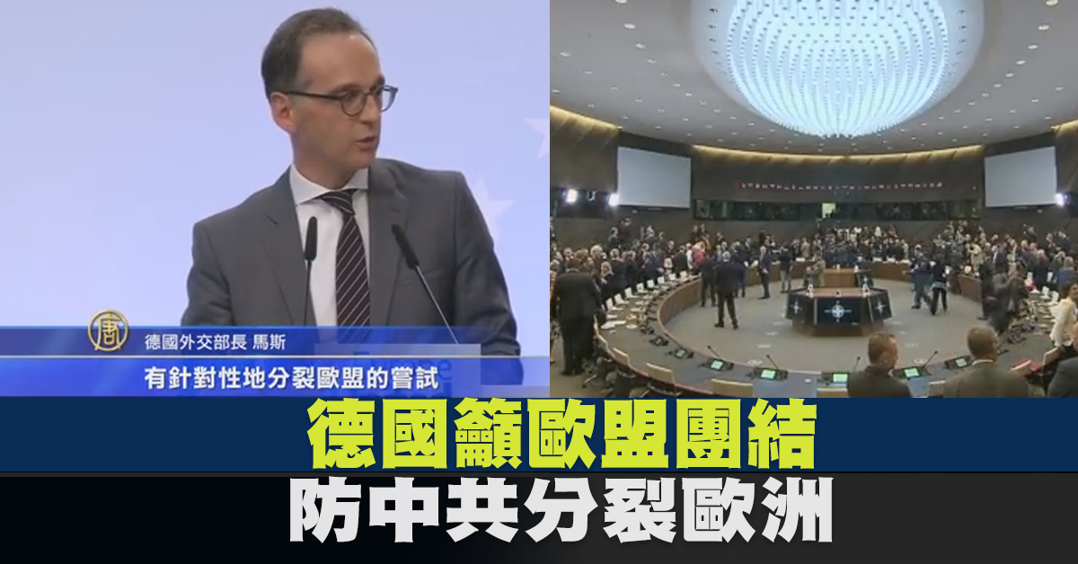 週三,德國外長馬斯(HEIKO MAAS)在柏林發表講話,表示歐盟應該團結一致,對抗中國對歐盟的干涉。