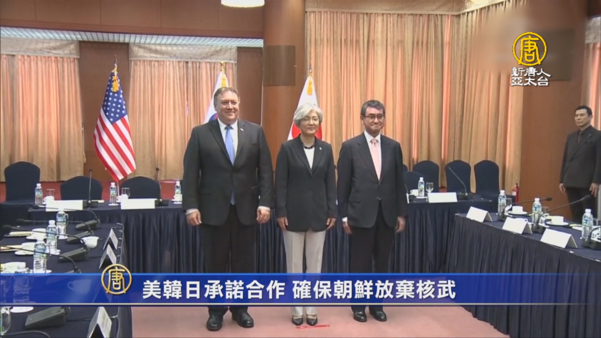 【新唐人亞太台 2018 年 06 月 14 日訊】繼續關注國際消息。就在美國總統川普和朝鮮領導人金正恩簽訂協議,同意致力於實現朝鮮半島無核化兩天後,美國、 韓國和日本三國外交官在首爾會面,承諾協力合作,確保朝鮮放棄核武計劃。